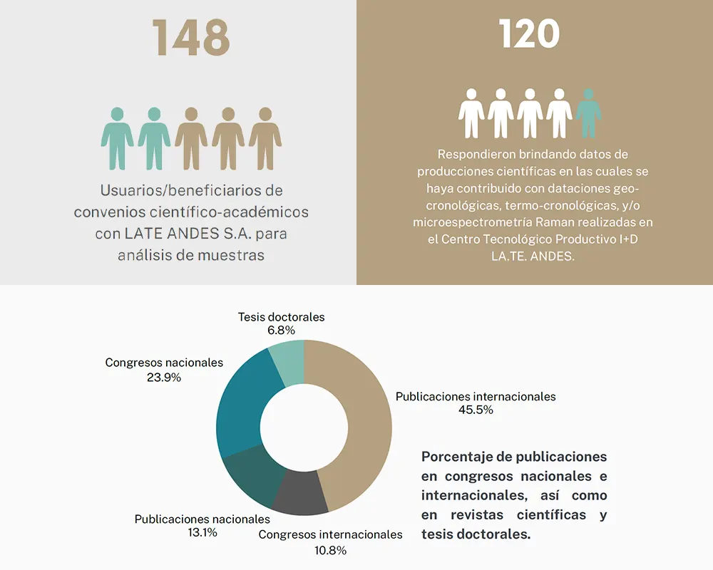 Desde 2019, el Centro Tecnológico Productivo I+D LA.TE. ANDES ha contribuido a 191 producciones científicas, incluyendo publicaciones en revistas internacionales y nacionales, tesis doctorales y presentaciones en congresos.